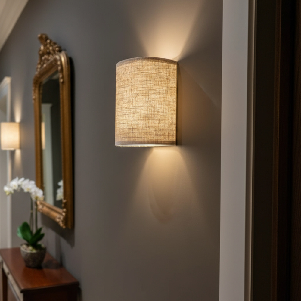 Ten kinkiet ścienny oferuje idealną harmonię ciepła i wyrafinowania. Wyposażony w teksturowany klosz z tkaniny, który delikatnie rozprasza światło w górę i w dół, tworzy kojącą i przyjazną atmosferę. Minimalistyczna cylindryczna forma uzupełnia zarówno nowoczesne, klasyczne, jak i przejściowe wnętrza - dzięki czemu jest idealnym wyborem do korytarzy, sypialni i pomieszczeń mieszkalnych.