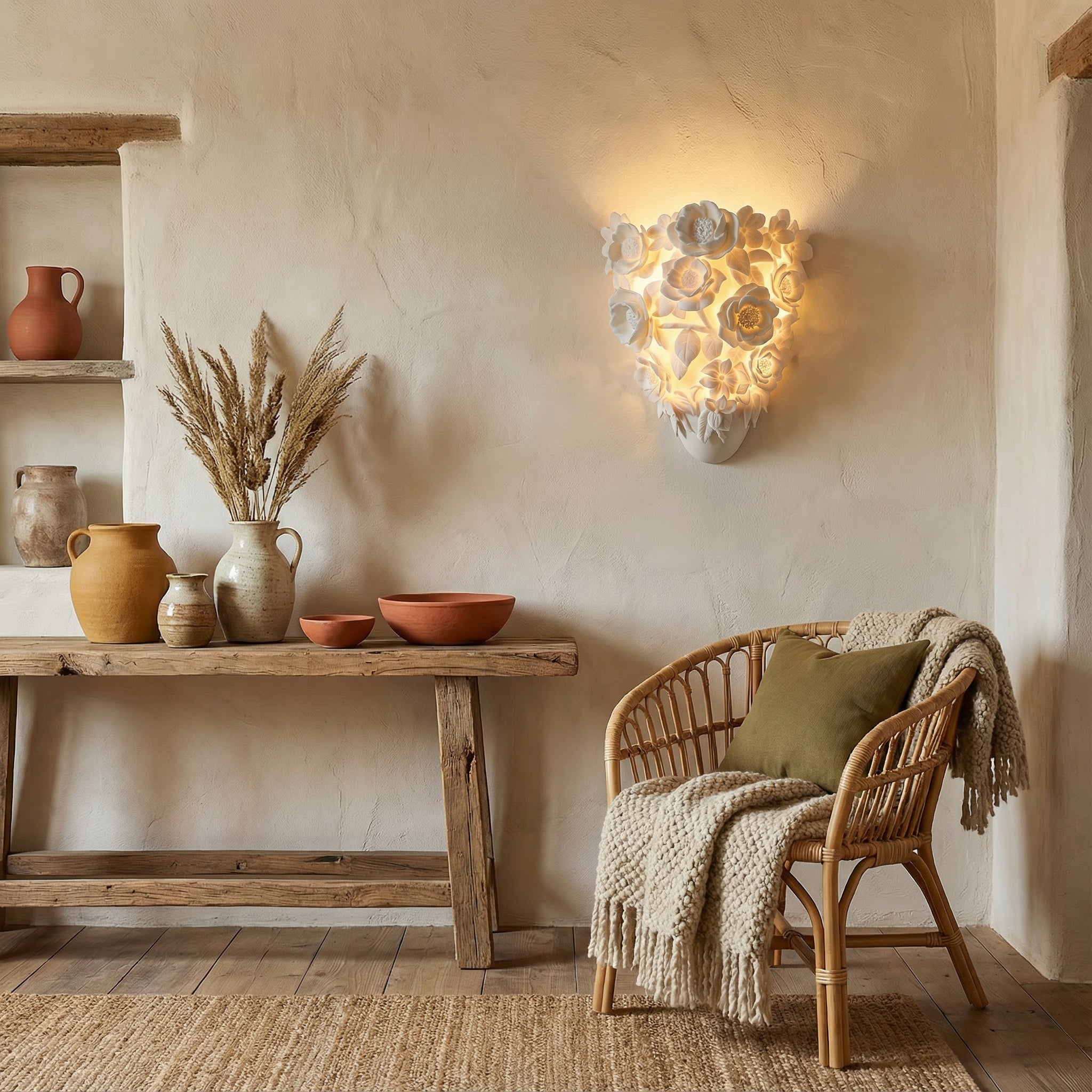 Lampa ścienna Ceramic Flower została zaprojektowana tak, aby dawać ciepłą, przyjemną poświatę, która wypełnia pomieszczenie, nie męcząc oczu. Niezależnie od tego, czy jesz kolację przy kuchennym stole, czy relaksujesz się w sypialni, ta lampa tworzy idealną atmosferę.