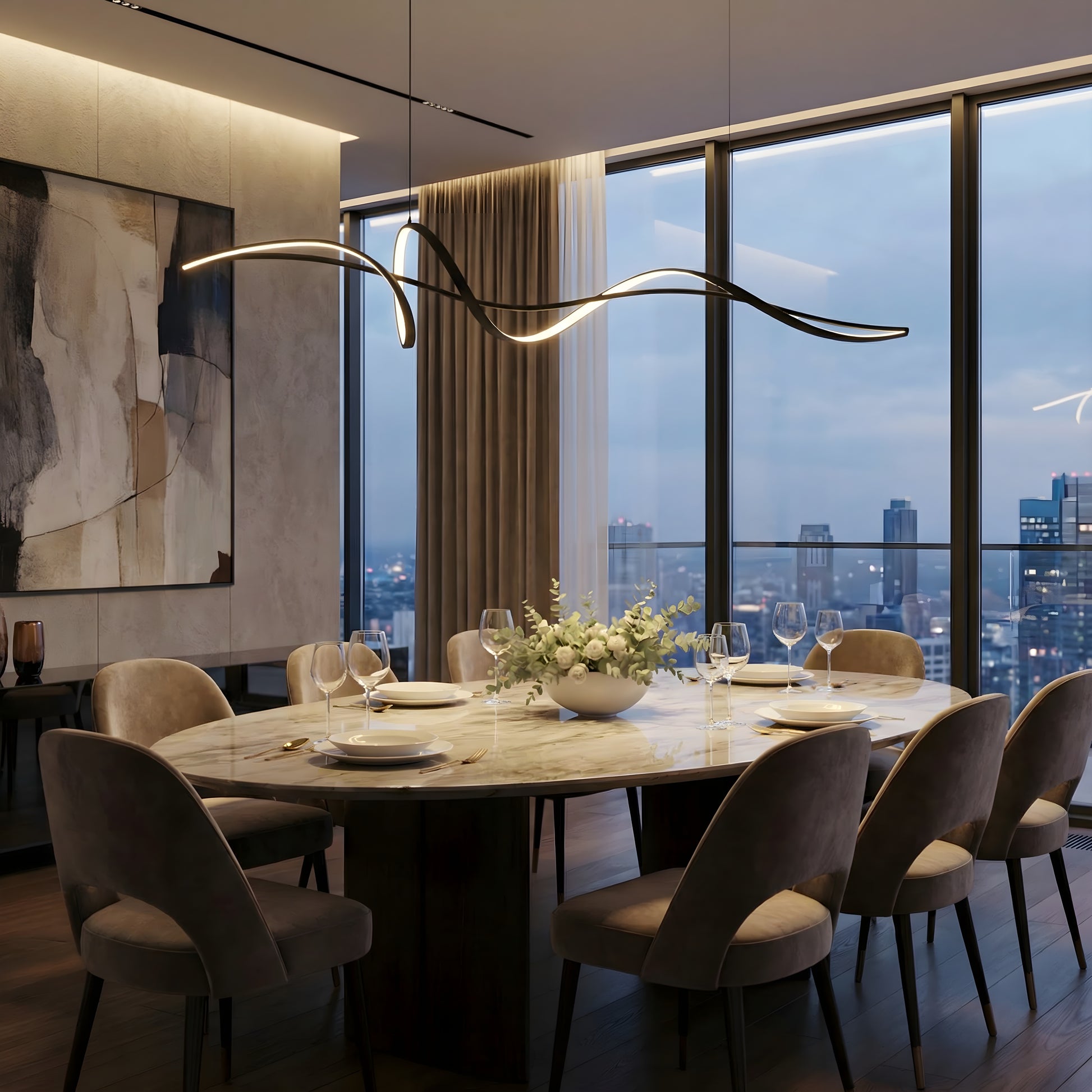 Wybierz ten żyrandol, jeśli szukasz czegoś więcej niż tylko oświetlenia — szukasz wrażeń. Jego pełen wdzięku, falisty kształt dodaje luksusowego, nowoczesnego charakteru, który natychmiastowo podnosi standard każdego pomieszczenia. Dzięki ciepłemu, nastrojowemu oświetleniu i wyjątkowej jakości wykonania nie tylko wzbogaca wystrój wnętrza, ale także zamienia codzienne chwile w pięknie oświetlone wspomnienia.