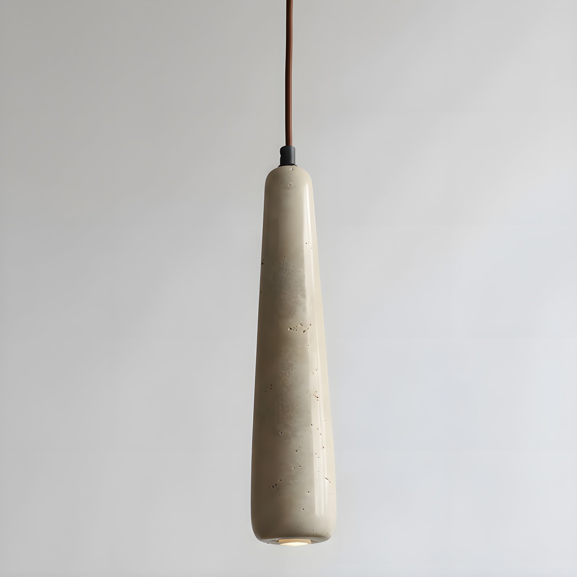 Smukła, wydłużona i bez wysiłku nowoczesna lampa wisząca wnosi rzeźbiarską wyrazistość do współczesnych wnętrz. Wykonana z gładkiej ceramiki z naturalnymi wariacjami tekstur, jej forma zwęża się z wdziękiem do miękkiego punktu, kierując ciepłą, skupioną poświatę w dół. Idealna do stosowania nad wyspami kuchennymi, stołami jadalnymi lub intymnymi miejscami do siedzenia, uosabia minimalistyczny design z rzemieślniczą głębią.