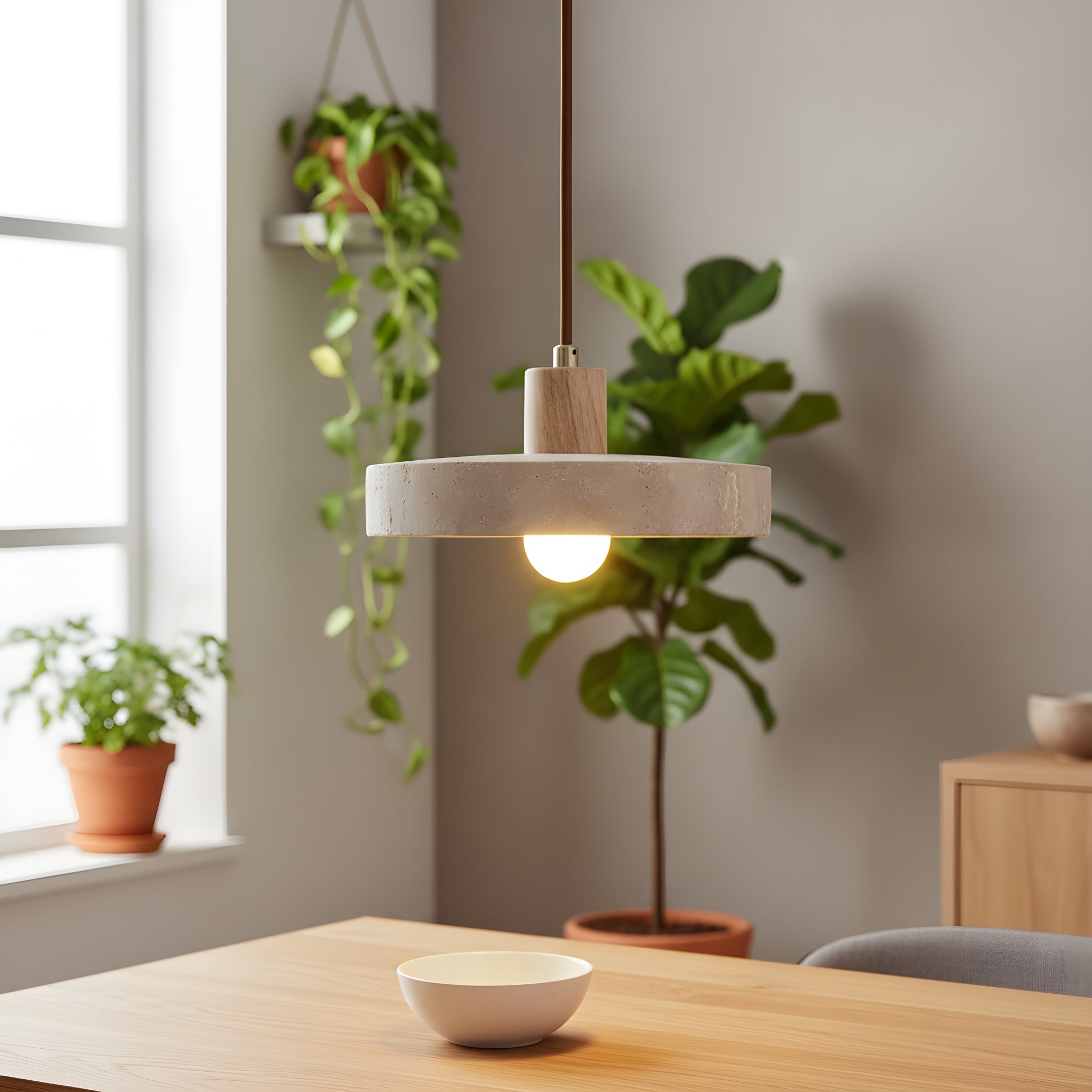 Ta nowoczesna lampa wisząca łączy industrialną teksturę z organicznym ciepłem. Ręcznie wykonany betonowy klosz w połączeniu z gładkimi drewnianymi akcentami tworzy uderzającą równowagę między surowym materiałem a wyrafinowanym designem. Jego okrągła forma delikatnie rozprasza światło, rzucając ciepłą i zachęcającą poświatę idealną do jadalni, przestrzeni mieszkalnych lub nowoczesnych loftów. Idealna do wnętrz, które celebrują prostotę, kunszt i piękno naturalnych materiałów.